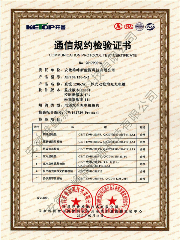 熱烈祝賀安徽雄峰新能源科技有限公司充電樁產(chǎn)品順利通過中電協(xié)繼電保護及自動化設備分會技術(shù)標準中心、許昌開普檢測技術(shù)有限公司及國家職能微電網(wǎng)控制設備及系統(tǒng)質(zhì)量監(jiān)督檢驗中心檢測,并獲得產(chǎn)品檢測證書及檢驗報告!